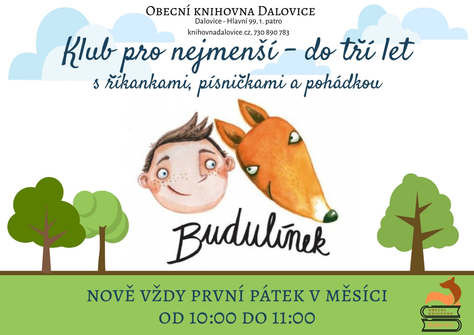 (Ale navštívit knihovnu se svými ratolestmi a prohlížet si s nimi knížky v dětském koutku knihovny můžete i kdykoli v běžnou otevírací dobu, tj. úterý a čtvrtek 9-11 a 12-17 h.)